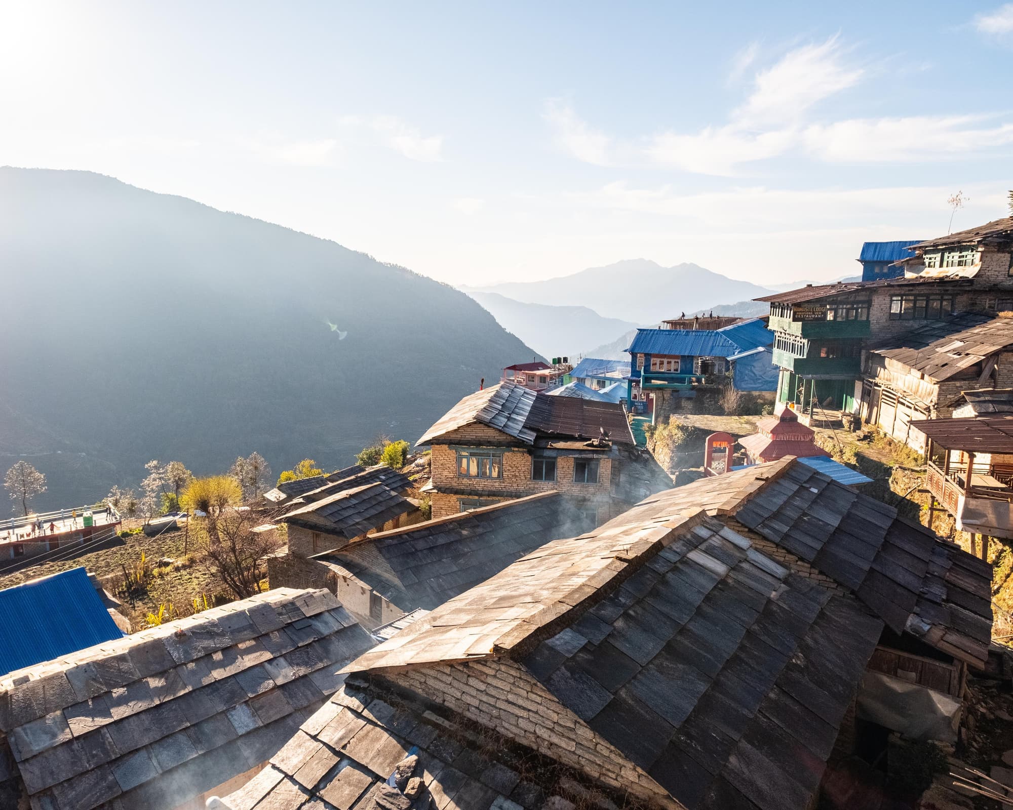 Petit-déjeuner inclus au lodge. Le trajet de Kurintar à Lumle offre une immersion inoubliable au cœur de la région de l’Annapurna, entre paysages spectaculaires et rencontres culturelles. La route sinueuse grimpe à travers les collines, traverse de charmants villages traditionnels et des terres agricoles verdoyantes, jusqu’à atteindre Lumle, niché dans un cadre naturel d’une beauté saisissante. À votre arrivée à Lumle, vous débutez votre trek à destination de Majgaon, étape du célèbre circuit de l’Annapurna. C’est une promenade douce à travers les contreforts, offrant de magnifiques vues sur la chaîne de l’Annapurna. Nuit au Majgaon Lodge.
