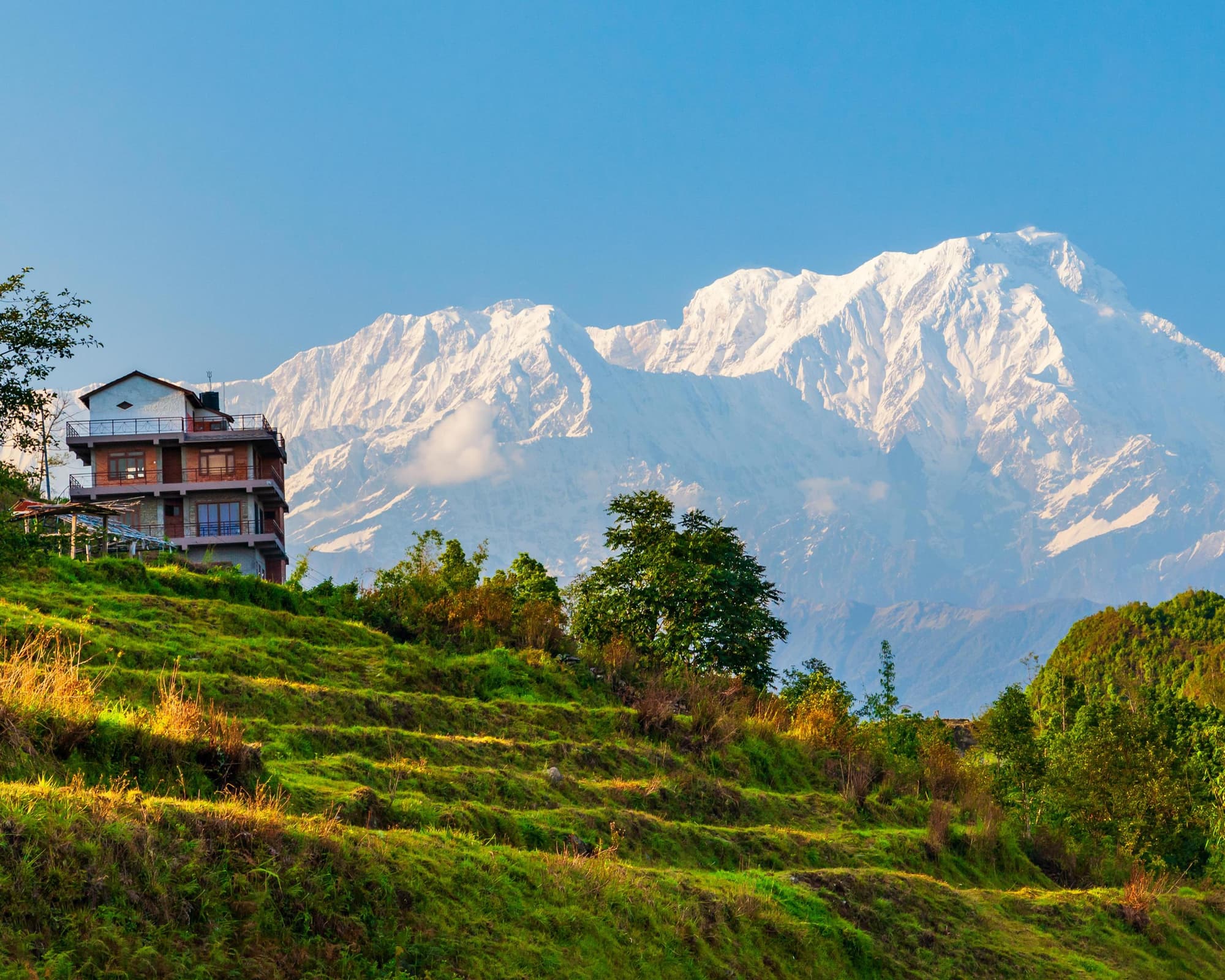 Petit-déjeuner inclus au lodge. Cette journée est dédiée à la randonnée jusqu’à l’Australian Camp, une courte balade très appréciée, offrant des vues spectaculaires sur la chaîne de l’Annapurna. Ce sentier facile, accessible à tous les niveaux de forme physique, prend environ 2h30 depuis Majgaon. Arrivé au camp, vous serez récompensé par un panorama exceptionnel sur Annapurna Sud, Hiunchuli, Machhapuchhare et Lamjung Himal. Nuit au Majgaon Lodge.