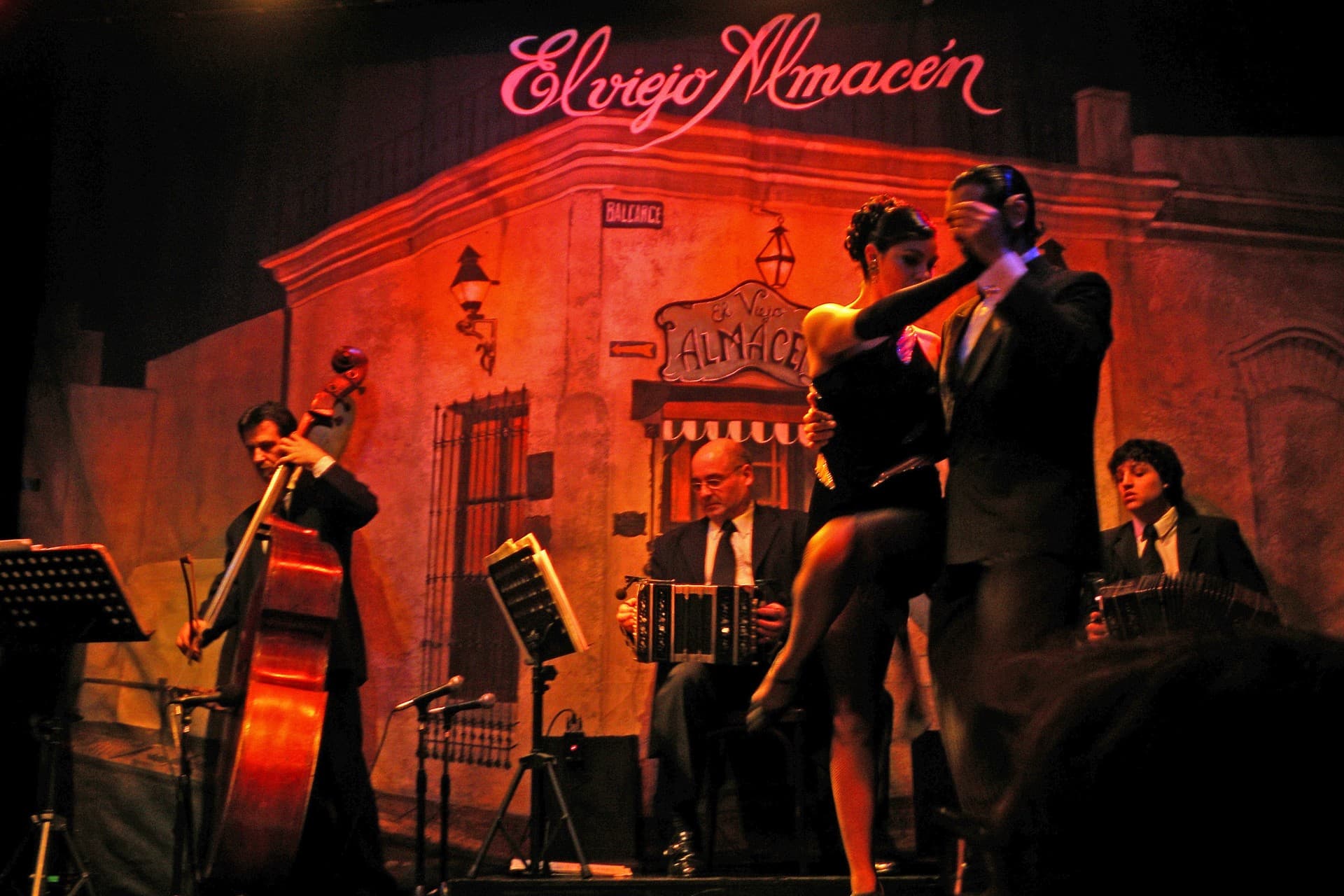 Der Ursprung des Tangos liegt im vorigen Jahrhundert, als das gesamte Gebiet des Río de la Plata mit europäischen Einwanderern überschwemmt wurde, die alle ihre eigene Musik mitbrachten. Irgendwann verschmolzen die Elemente der verschiedenen Musikrichtungen miteinander und es entstand etwas Neues: der Tango. Die ersten Instrumente, der durch Tanzsäle und Straßen ziehenden Musiker und der (zunächst nur männlichen) Tänzer waren Flöten, Violinen und Gitarren, später setzten sich auch Klavier und Bandoneon (eine Art Akkordeon) als Tangoinstrumente durch.